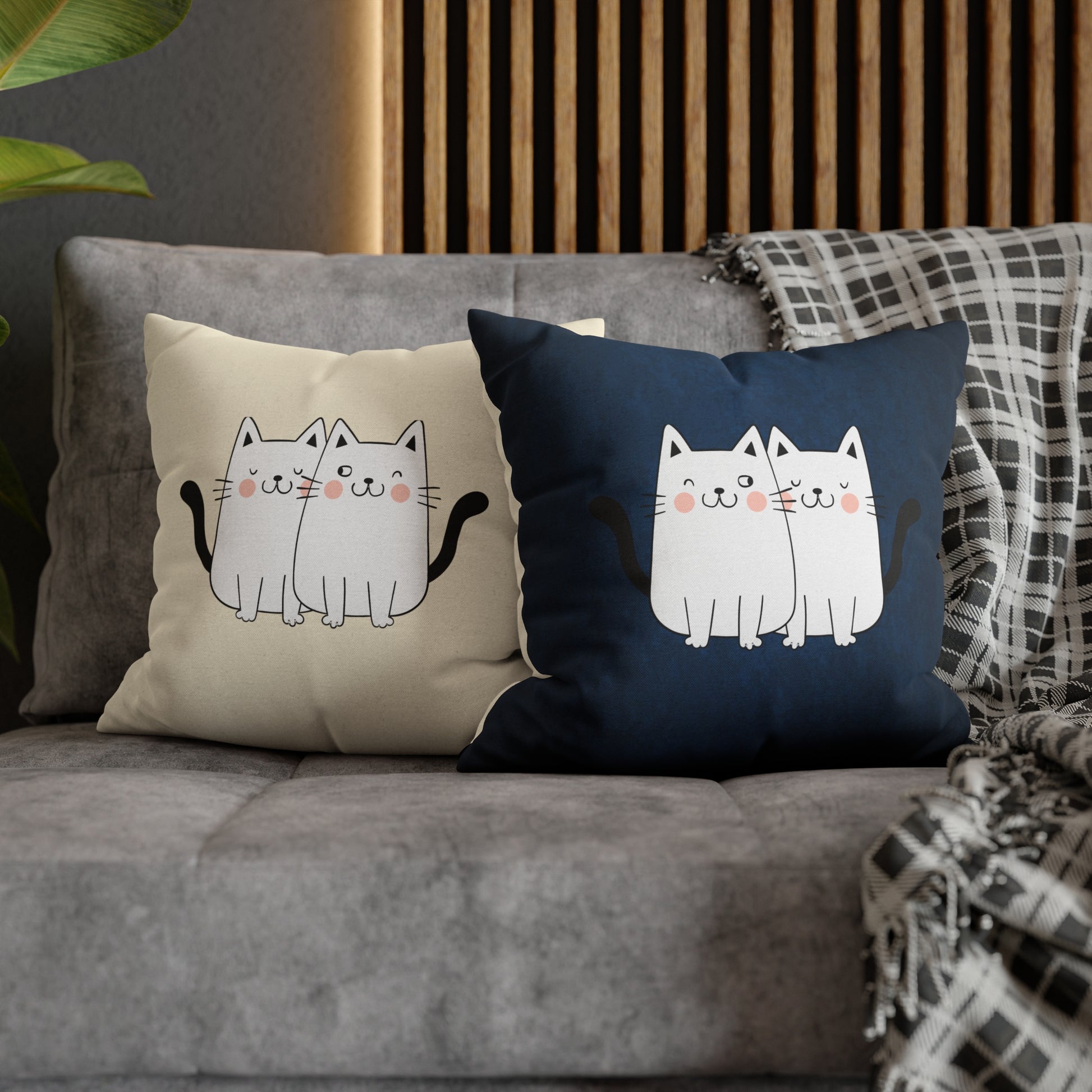This cute indoor square cushion pillowcase is a versatile statement decor piece that reflects both your inner feline & outer style in 2 variations - Warm Cozy Cream and Deep Sea Sapphire.