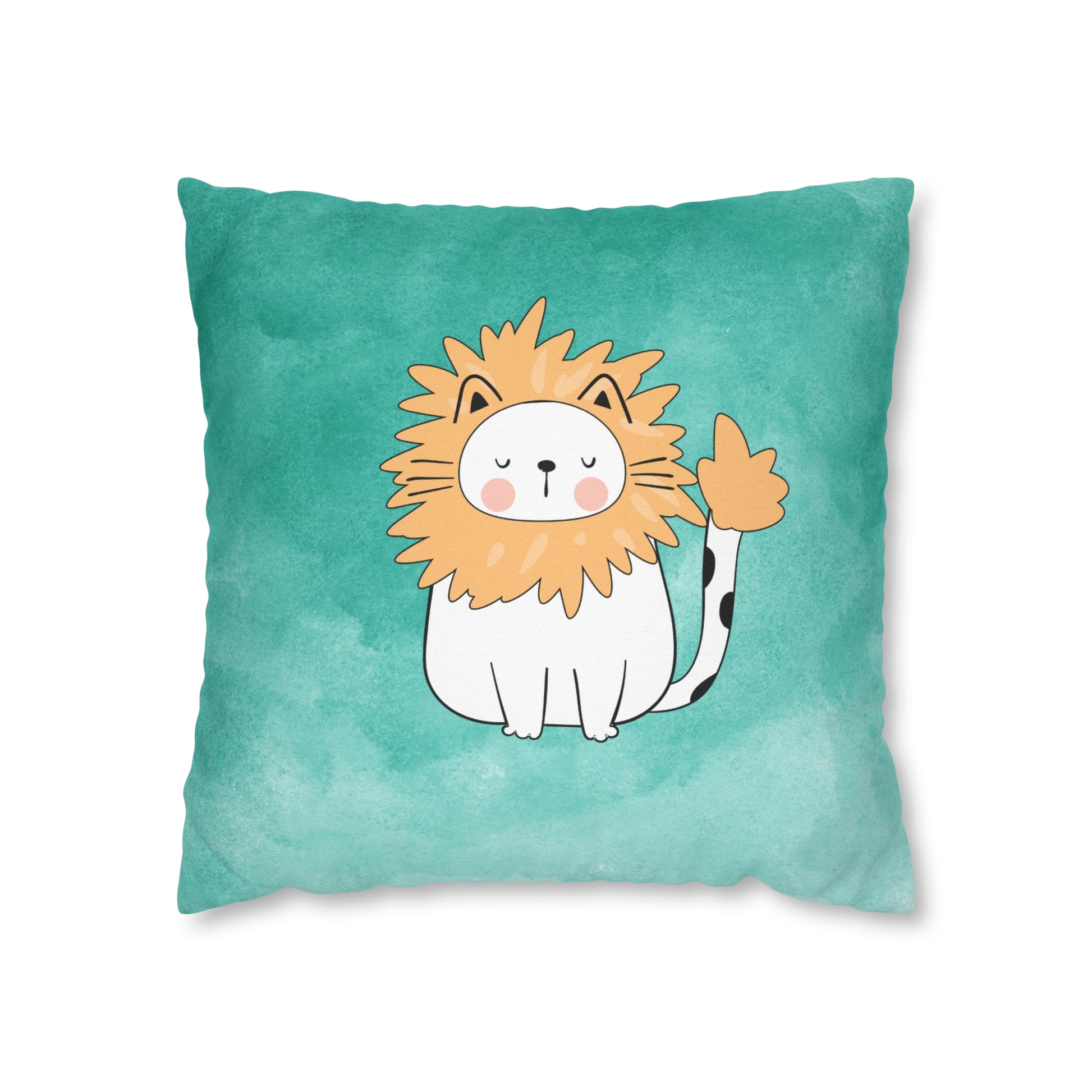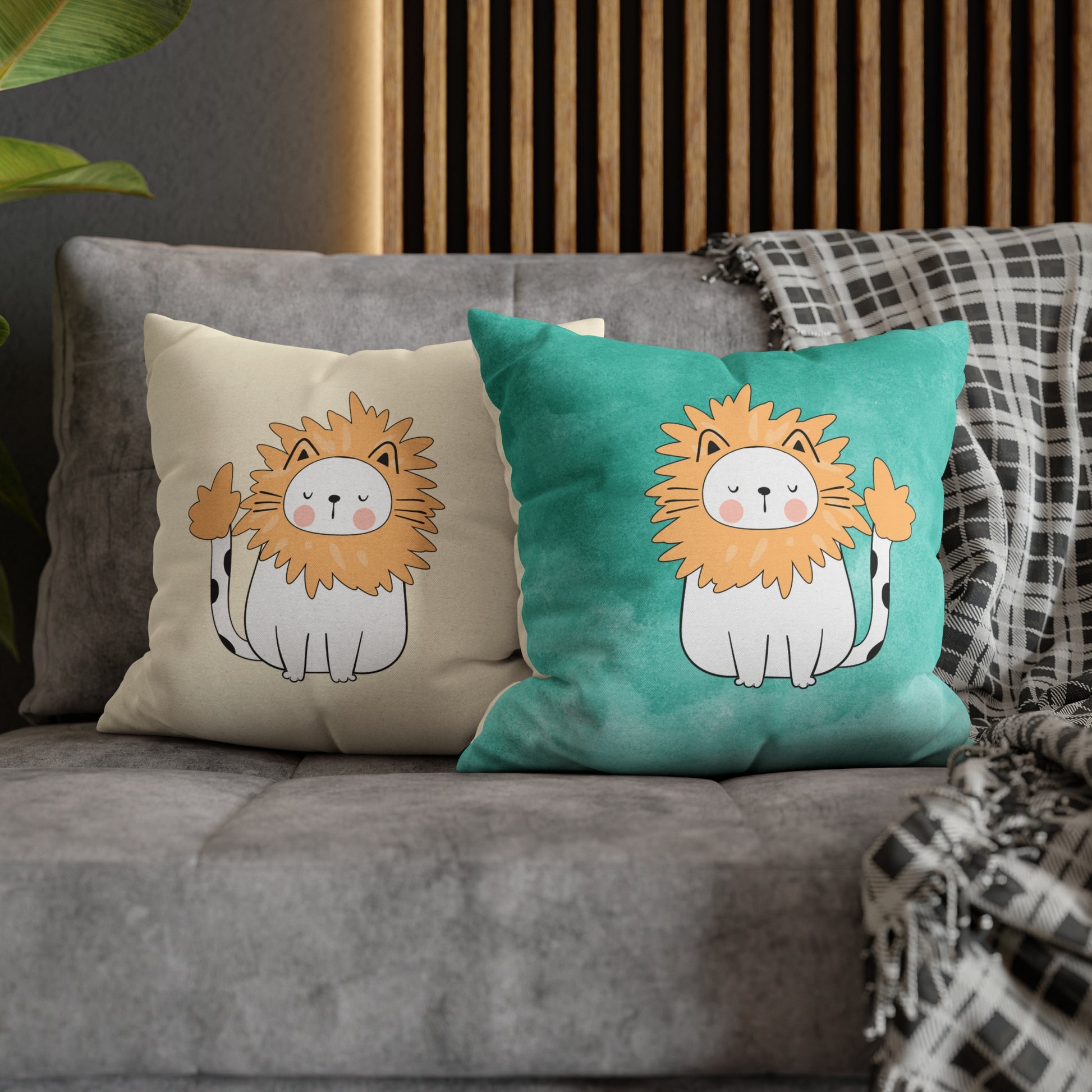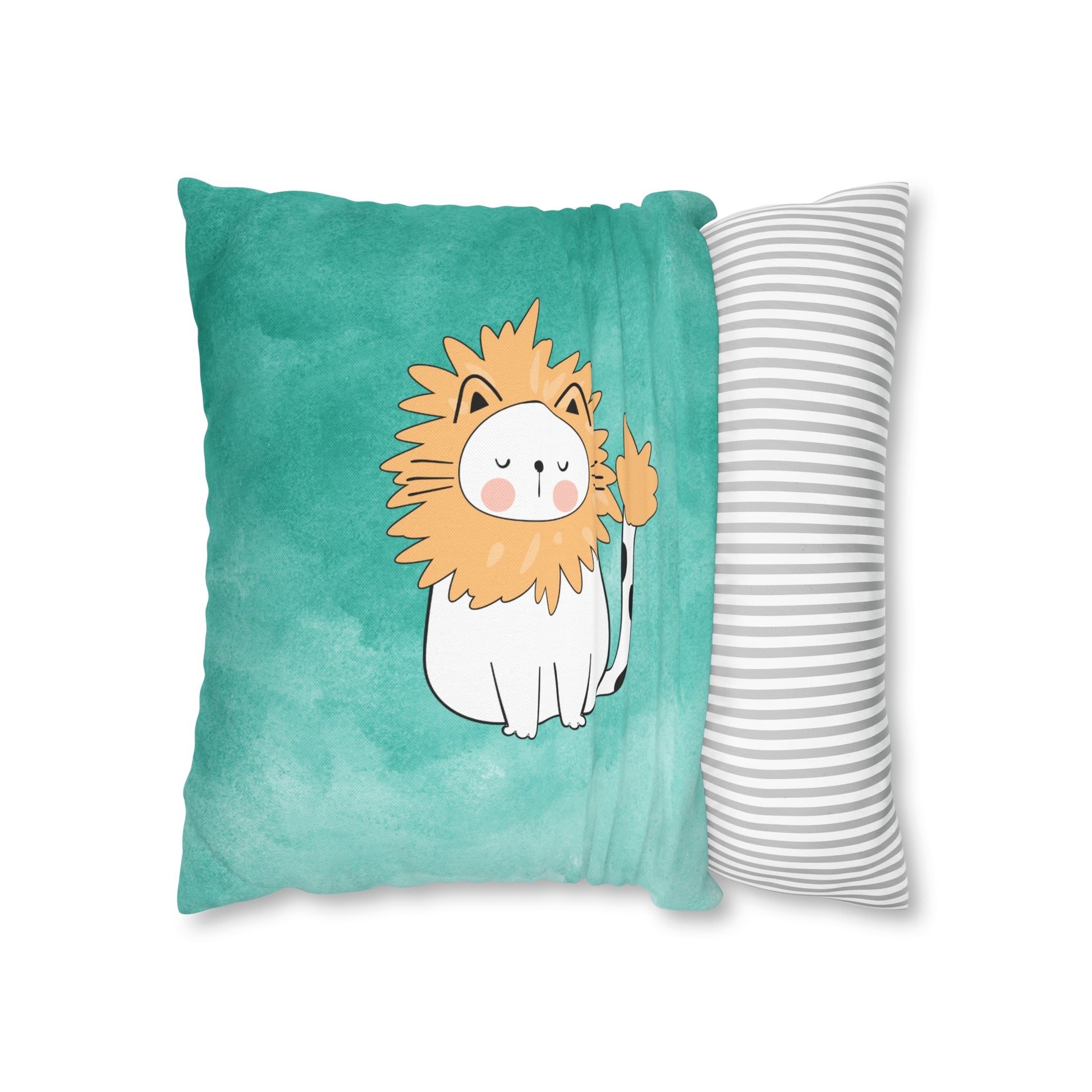 Leo Lucky Cat : Two-Tone Cushion Pillow Cover - Aquamarine Green