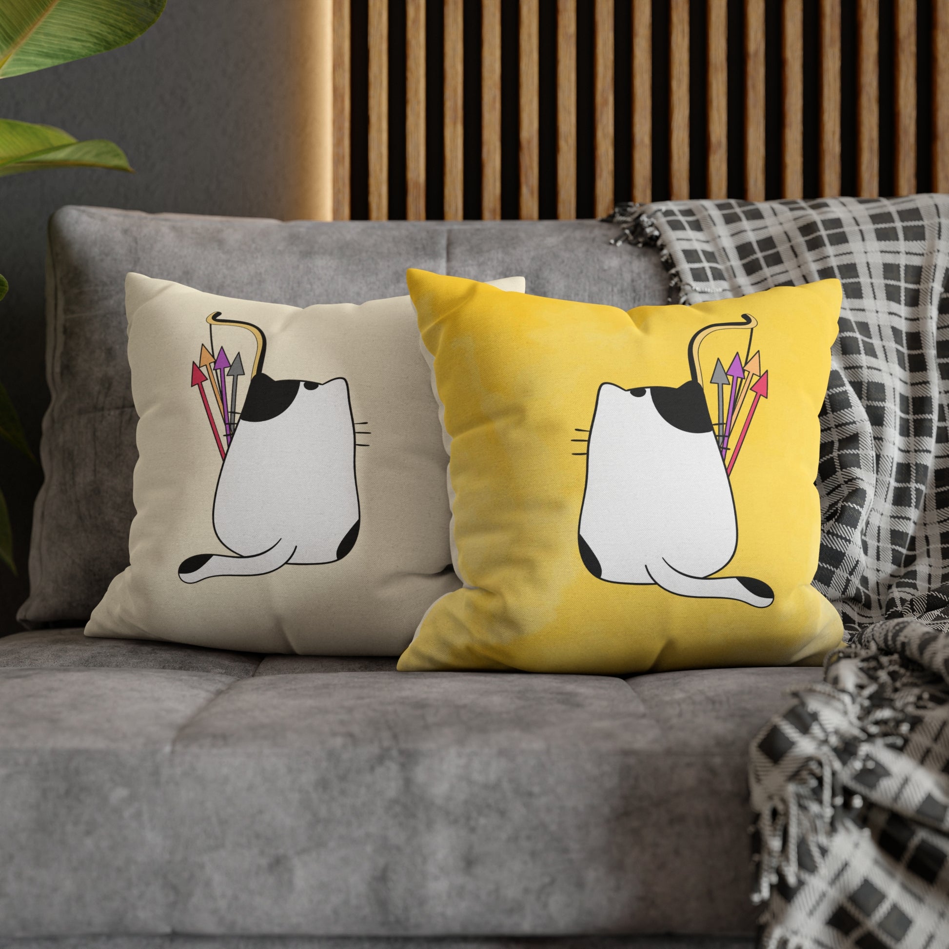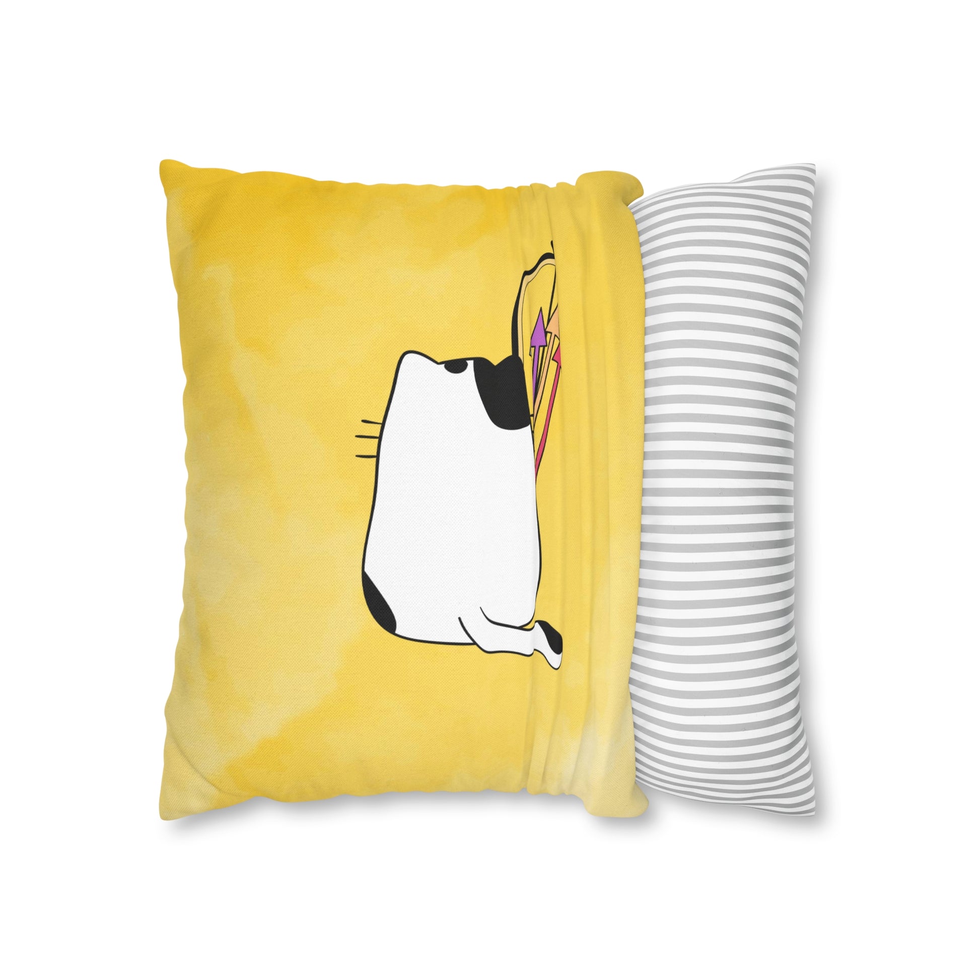 This cute indoor square cushion pillowcase is a versatile statement decor piece that reflects both your inner feline & outer style in 2 variations - Warm Cozy Cream and Lemon Buttermilk.