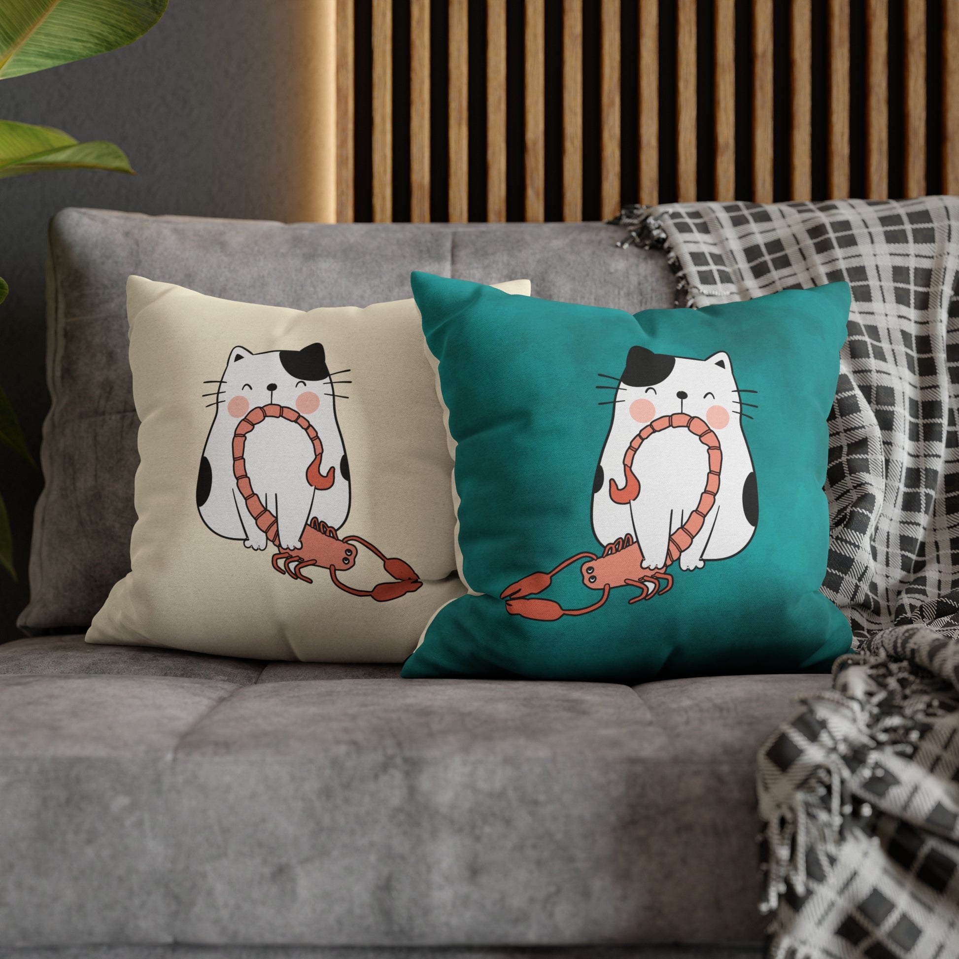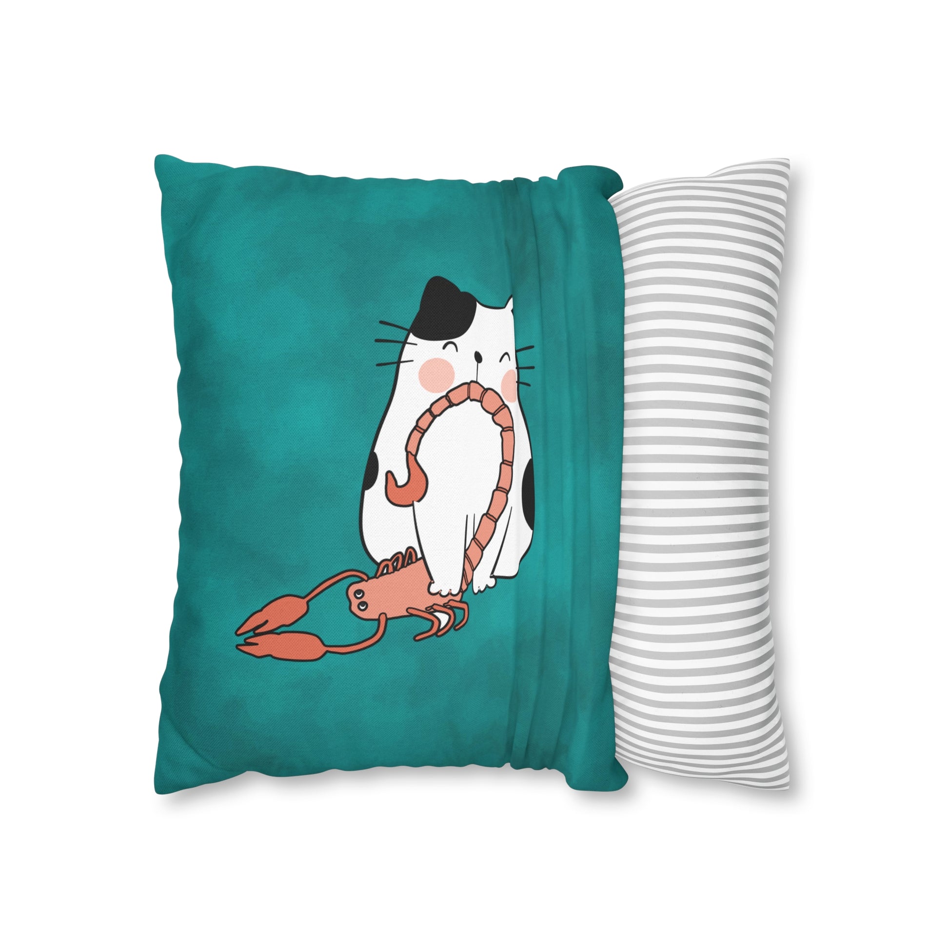 Scorpio Lucky Cat: Two-Tone Cushion Pillow Cover - Burnt Turquoise